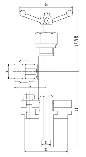 尺寸 產(chǎn)品代號 | DN | L開 | L關(guān) | L | L1 | D0 | D1 | D2 | M |