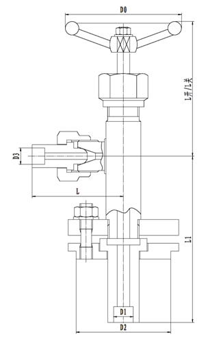 尺寸 產(chǎn)品代號 | DN | L開 | L關(guān) | L | L1 | D0 | D1 | D2 | D3 |